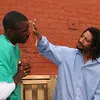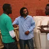 This scene starts out with two brothers in a bit of a turf war when Byron Long steps in and tries to quiet them, as they are disturbing the serenity of his hood. This instead has 3 of them going at it, and finally Angelina shows up from an office above them to try and get them to chill. She tries the "give peace a chance" routine, even showing them the dove and peace tatoo she has on her arm. Peace is one thing they all can agree on, but not the kind of peace Angelina had in mind. They're looking over this hot white babe, and thinking about getting a piece of her sweet white ass. When she suggests they go to the mediation room at her office, they are more than happy to comply. Soon Angelina is about to find out how persuasive 3 black dudes can be when it comes to getting their big dicks into a fine white pussy. Before she knows it, Angelina is on her knees sucking the biggest dicks she has ever laid eyes on, and from there it's gangbang on, as they strip her and take turns jamming those giant meat sticks in her tight little cockpit. After pounding her cootchie into a hunk of raw meat, they kneel her down and feed her their ghetto puddin', then leave her with a throbbing snatch, a sticky mouth, and a jizz beard.